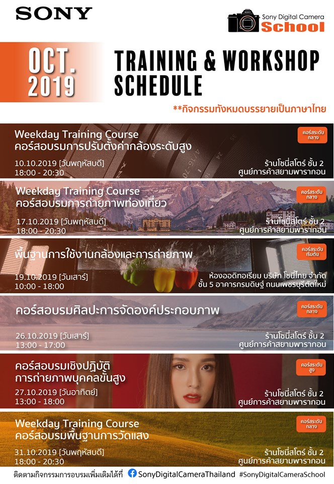 ตารางกิจกรรม Sony Digital Camera Thailand ประจำเดือน ตุลาคม 2562
